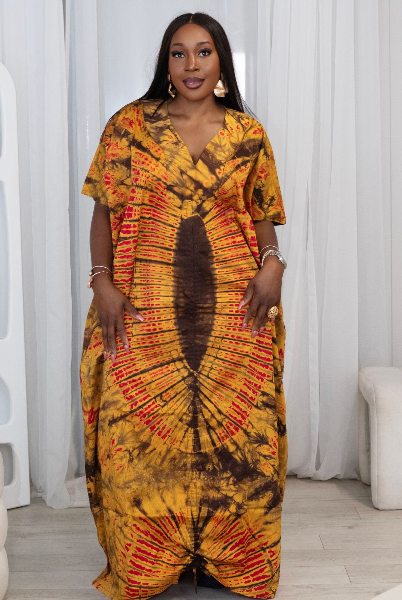 The colours are vibrant and the kaftan is so soft and comfortable to wear.