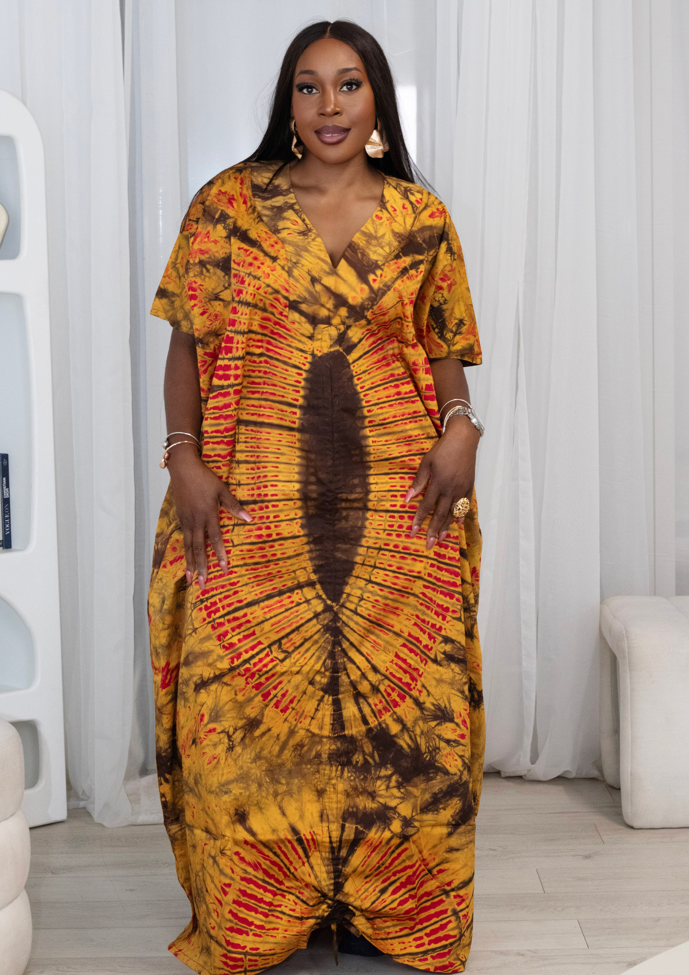 The colours are vibrant and the kaftan is so soft and comfortable to wear.