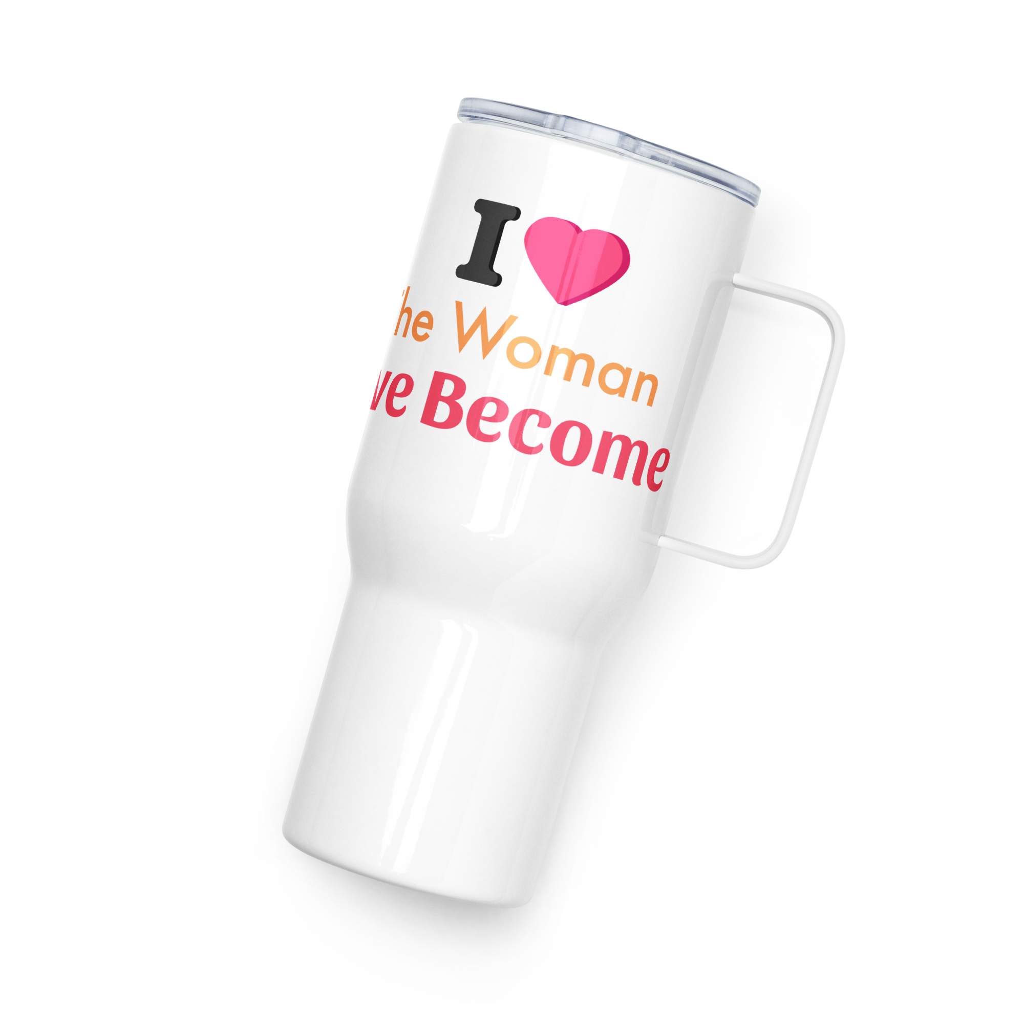 I Love the Woman I've become Travel mug with a handle