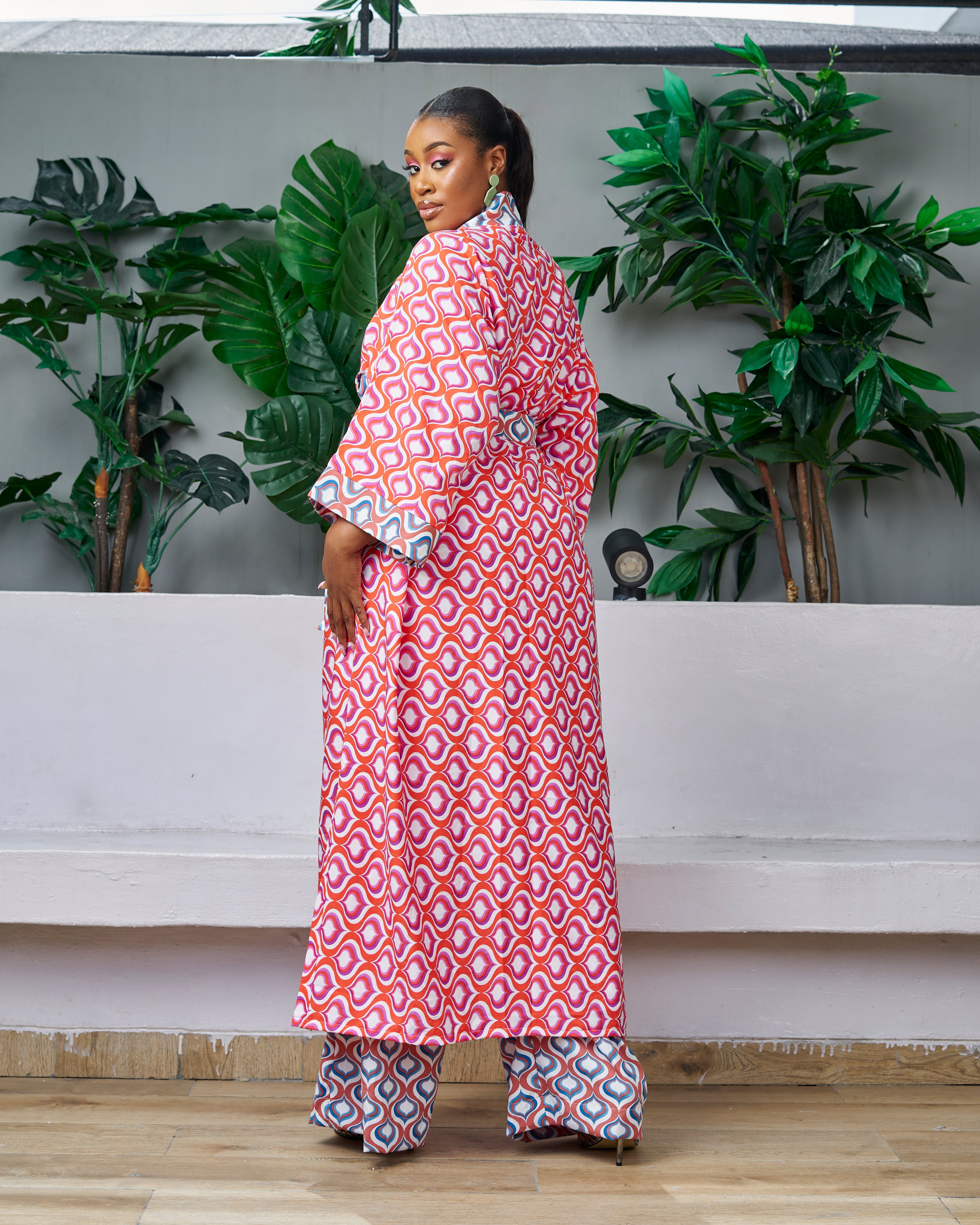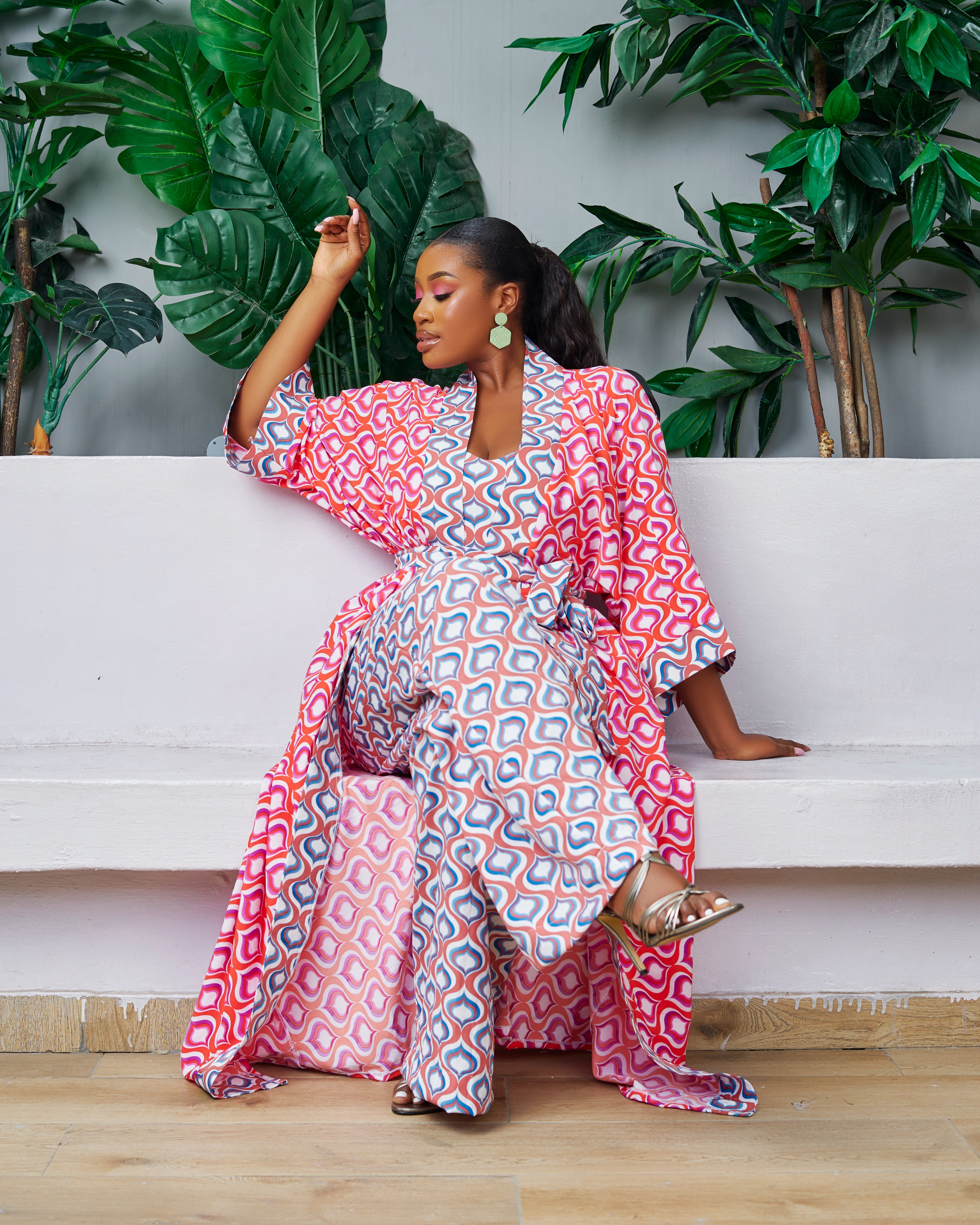 New in African Inspired Crepe Kimono (comes with a matching Trouser sold separately). A contemporary unique and fabulous outfit perfect for this holiday season, can be worn as an overlay for the perfect beach look.