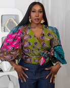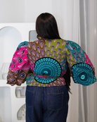Multicoloured Print Cotton Puff Sleeve Wrap Top - Ebelechi