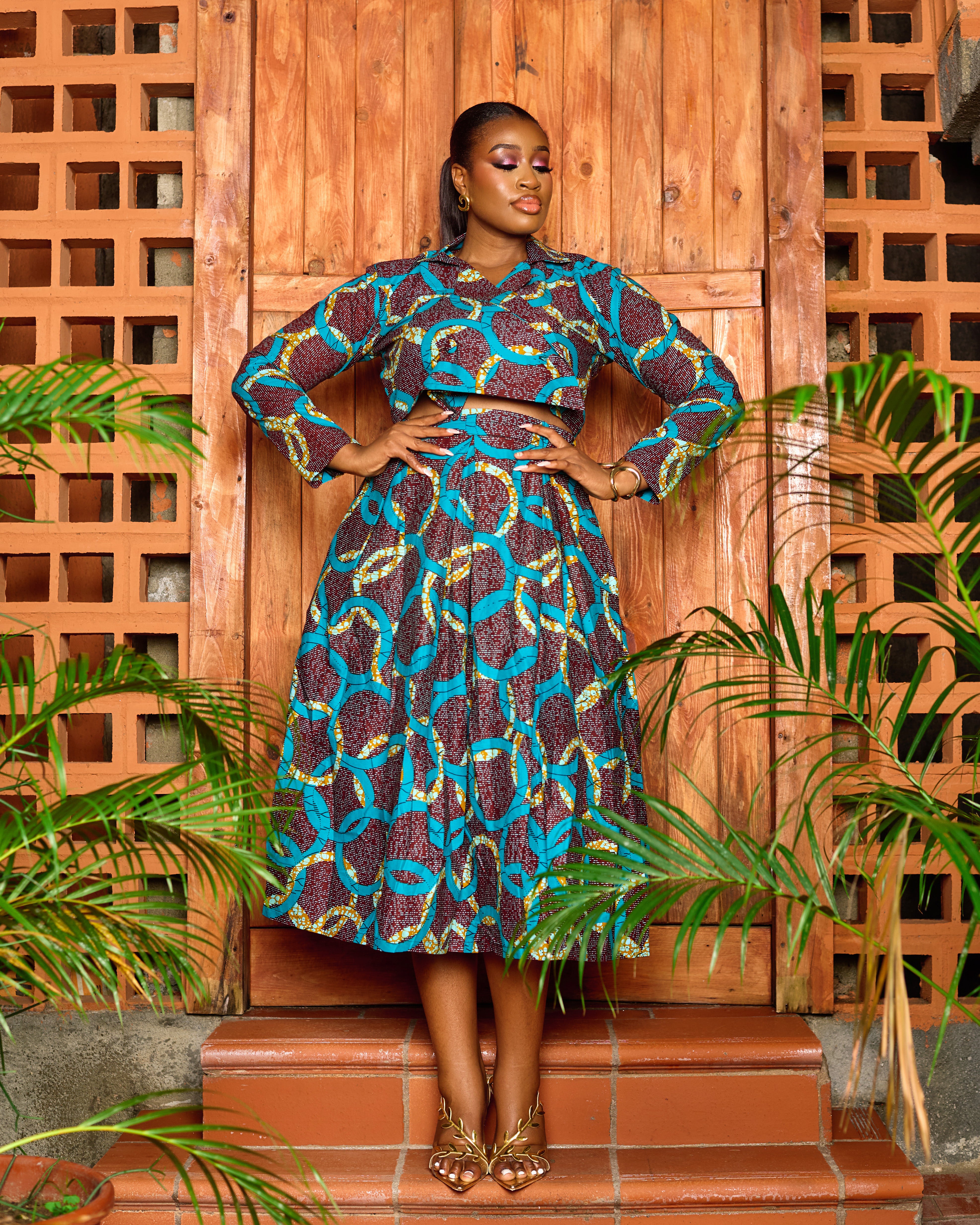 New in African Print Long Sleeve Crop Shirt Top - Tola