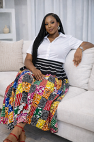 New in Premium African print Midi Skirt featuring traditional BLACK & WHITE stripes Asoke fabric to give an edgy contemporary design.