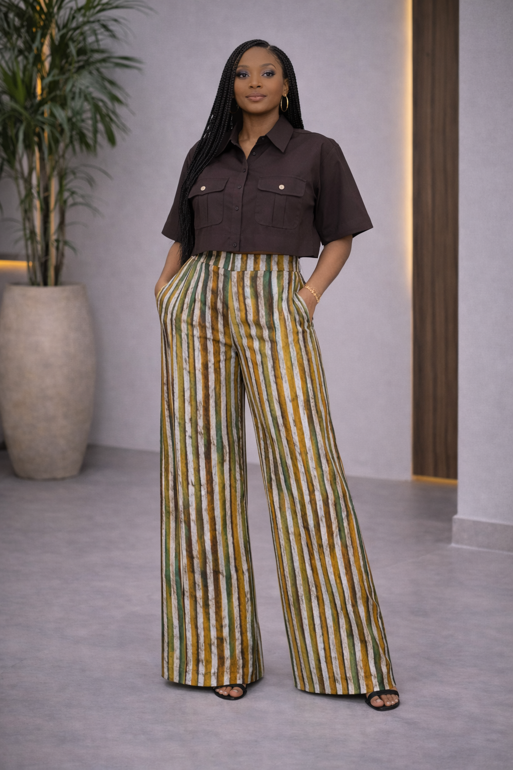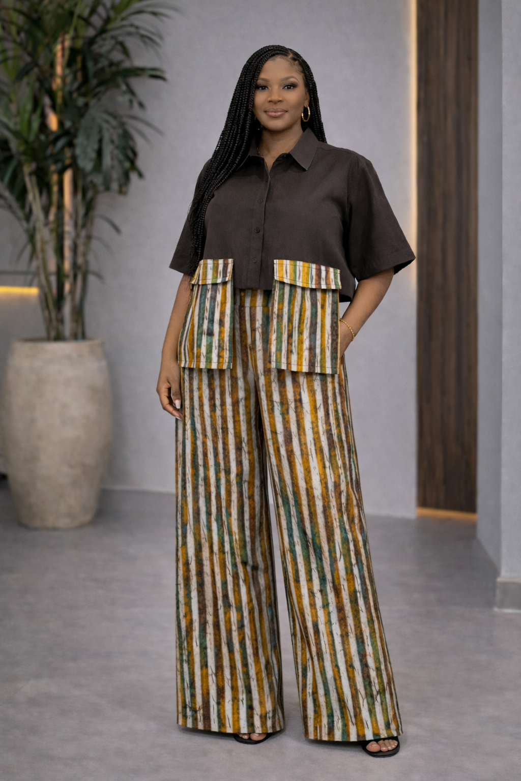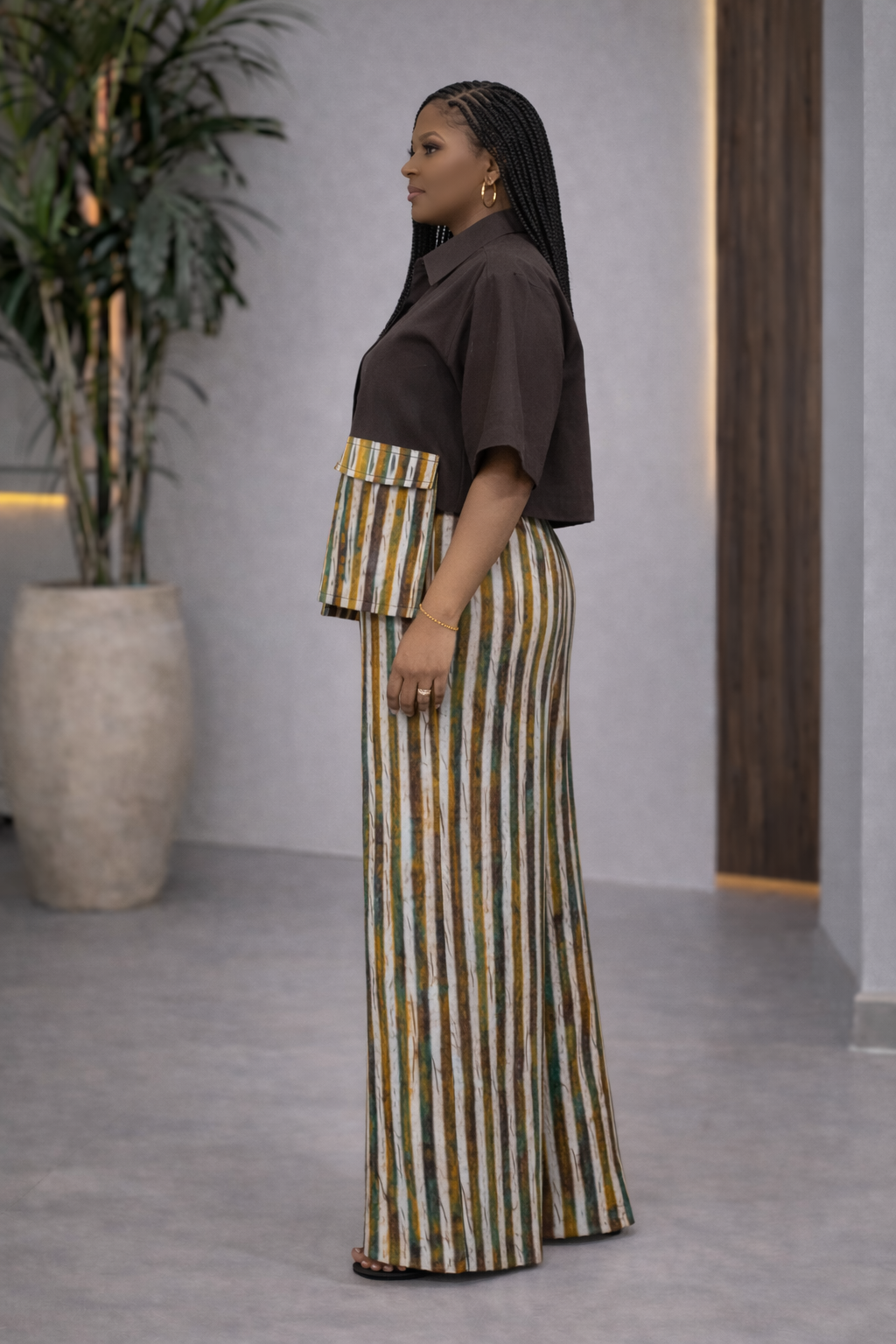 Stripe Adire Cotton Print High waist Trouser - Ebube
