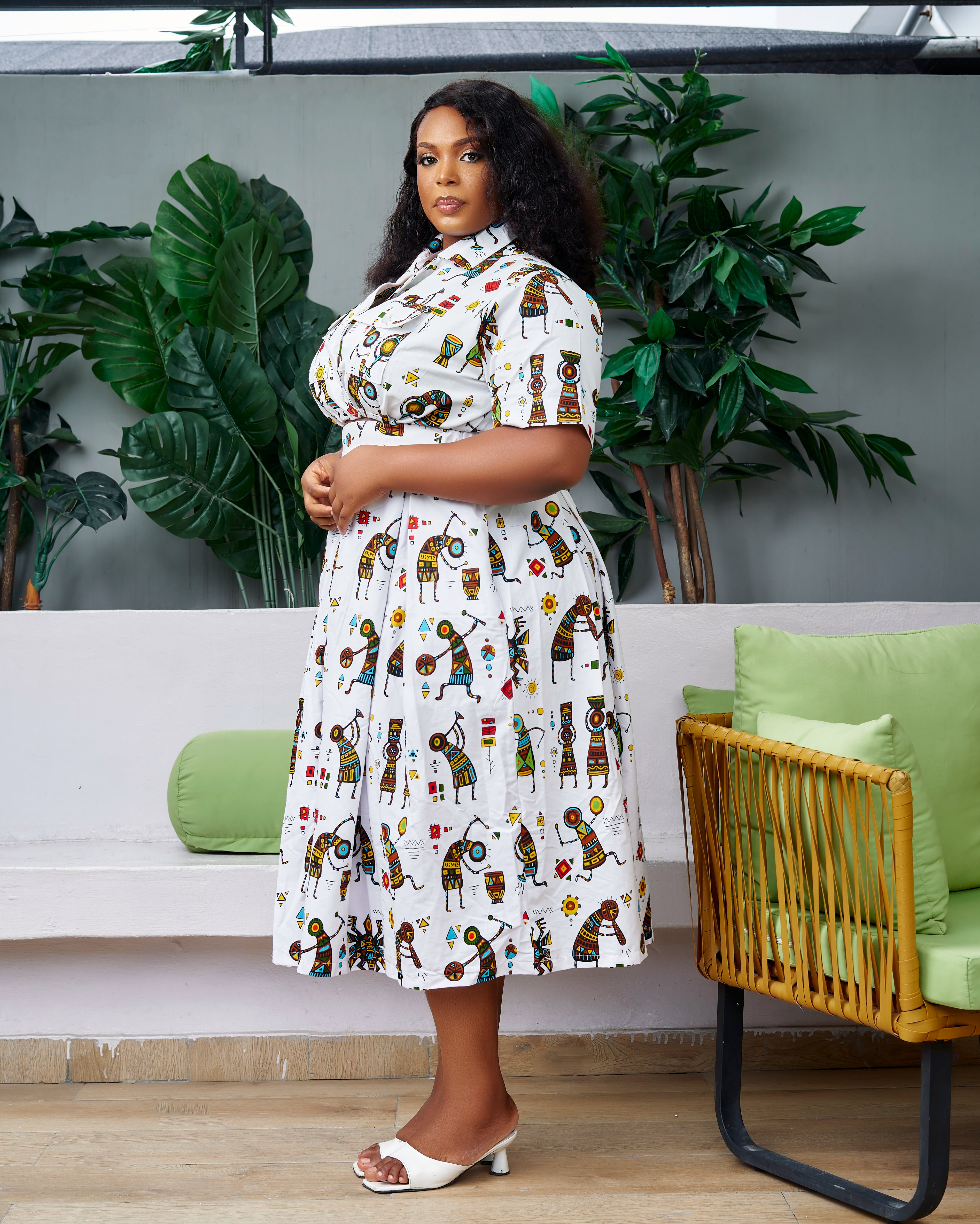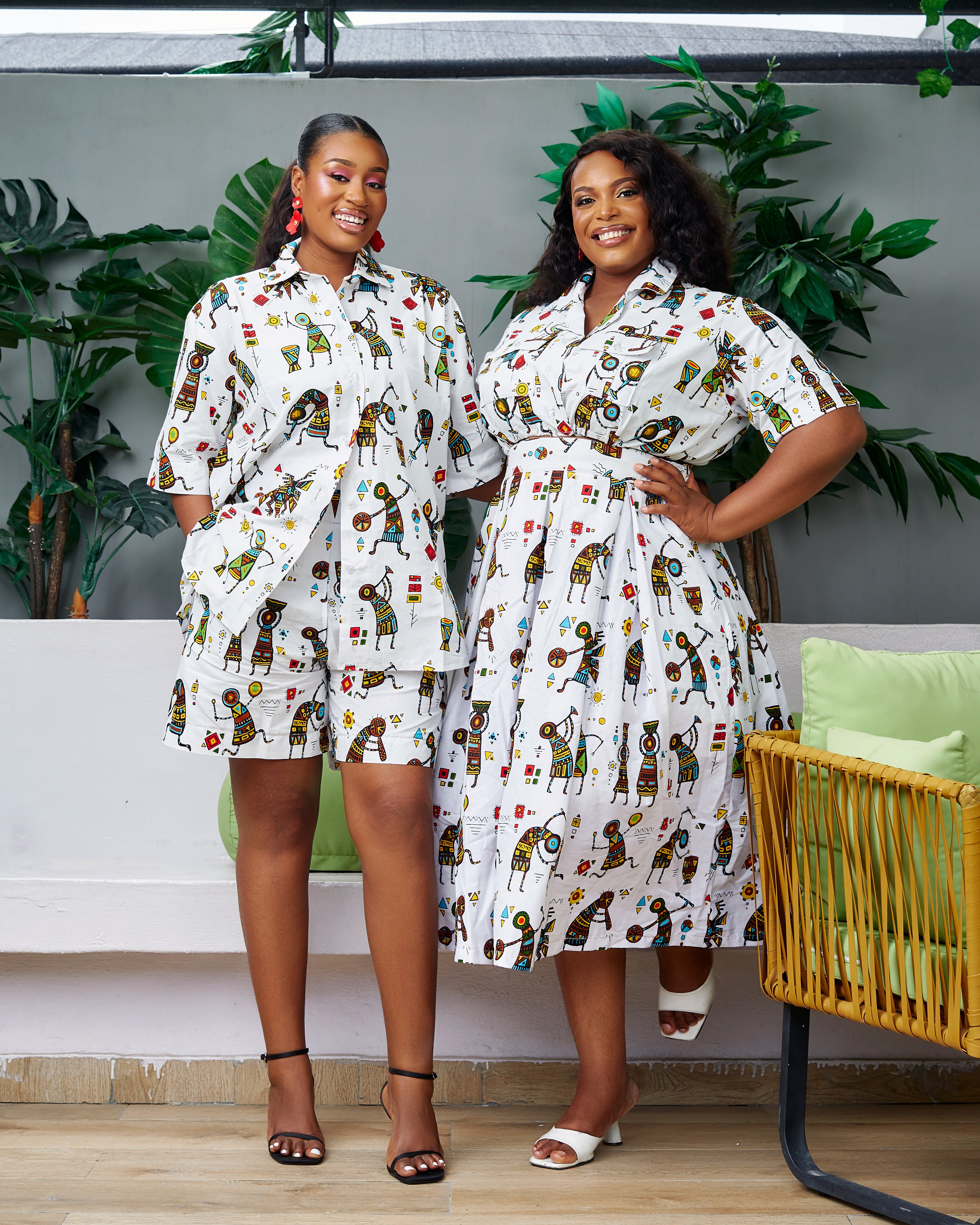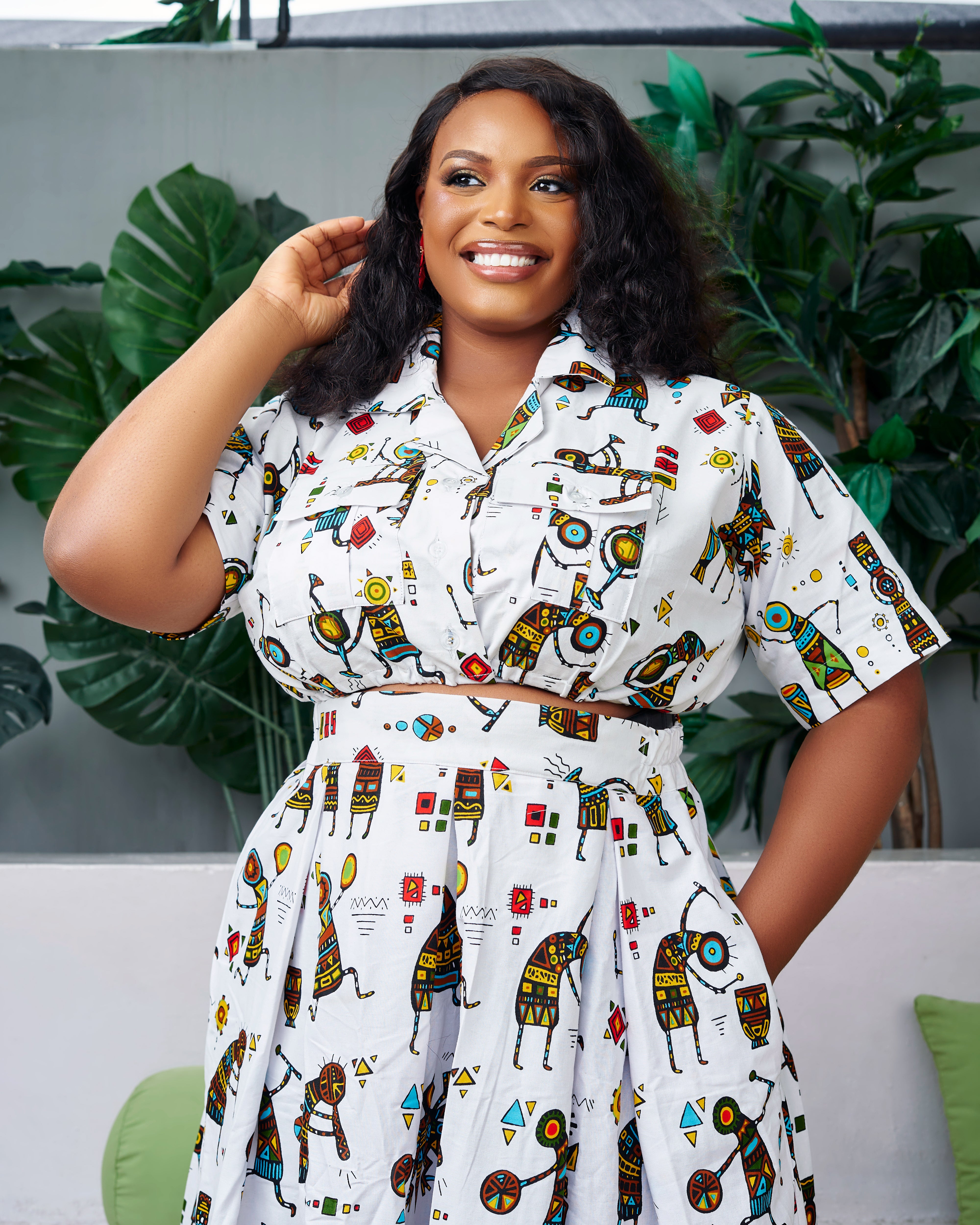 Just arrived is this beautiful box pleat African Print midi Skirt handmade in vibrant Ankara wax prints. The perfect candy print with all your favourite colours to match any blouse/top. This midi length skirt features 2 inner pocket, a back zip fastener and elasticated waist