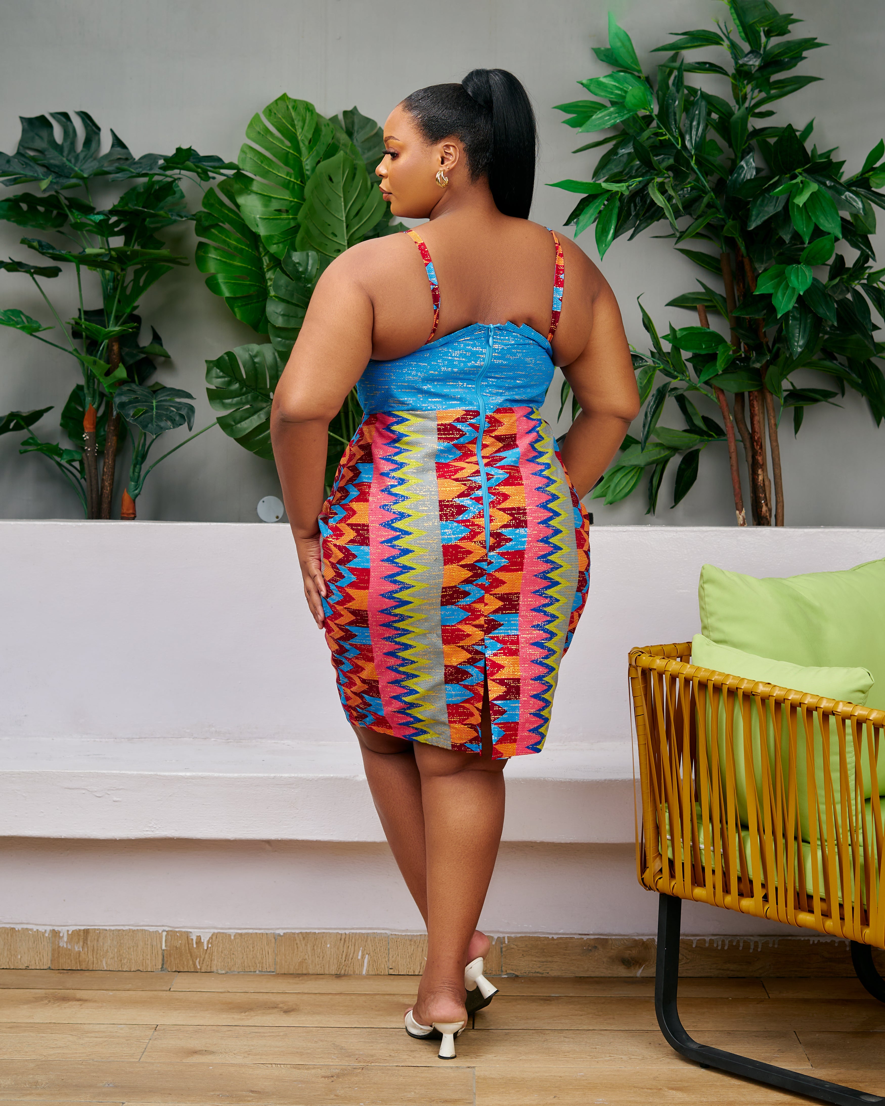 Introducing our Corset dresses perfect for special occasion. This vibrant Blue and Pink mixed kente print is giving "I have arrived, let the party get started"
