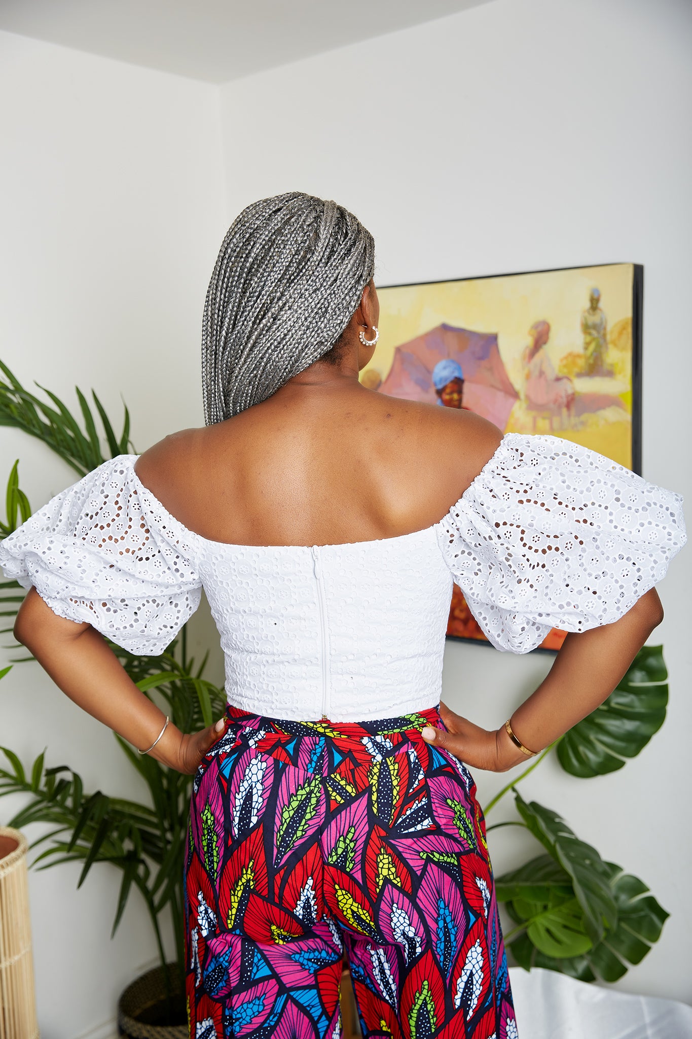 White Cotton Blend Off Shoulder Lace Top - Nene