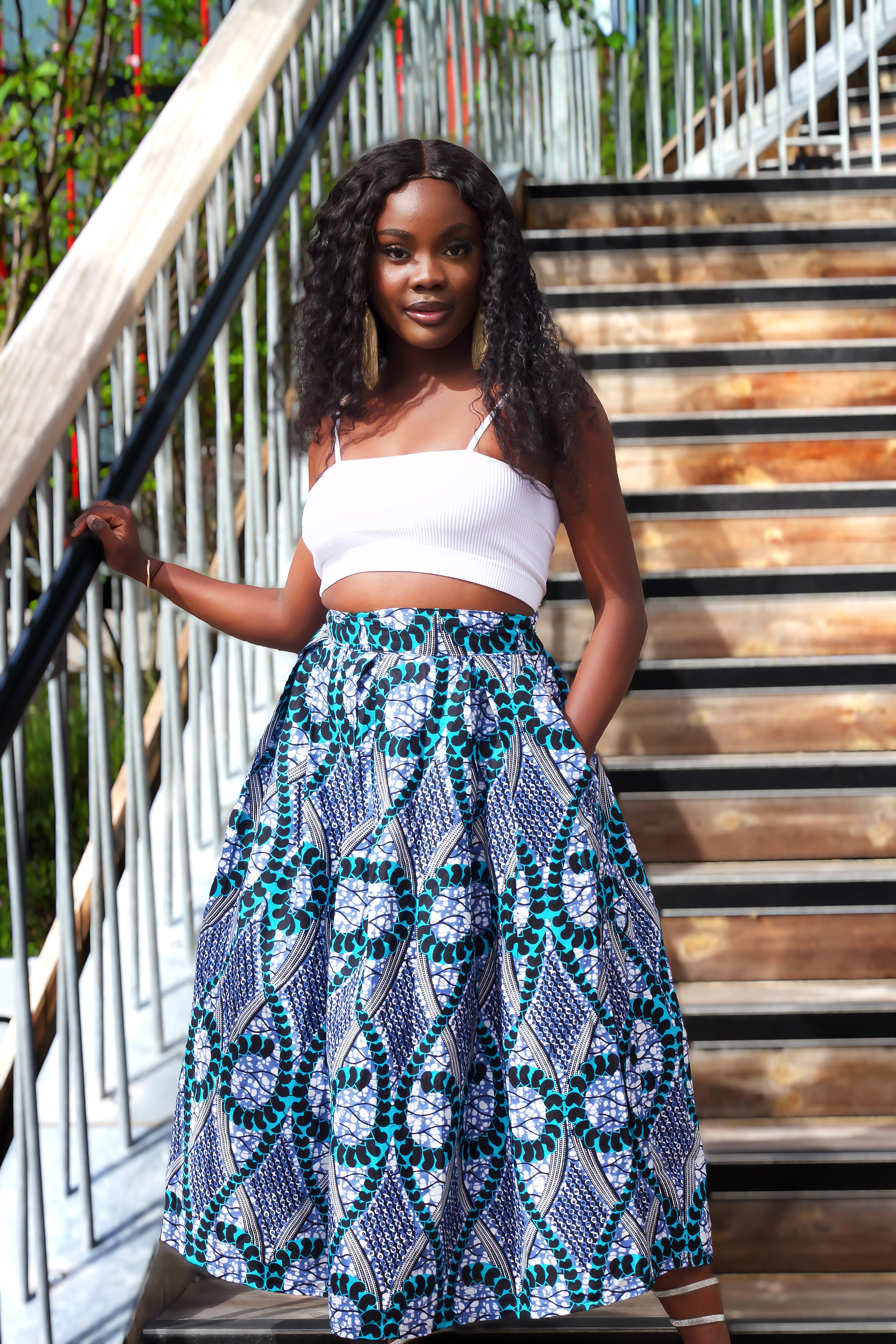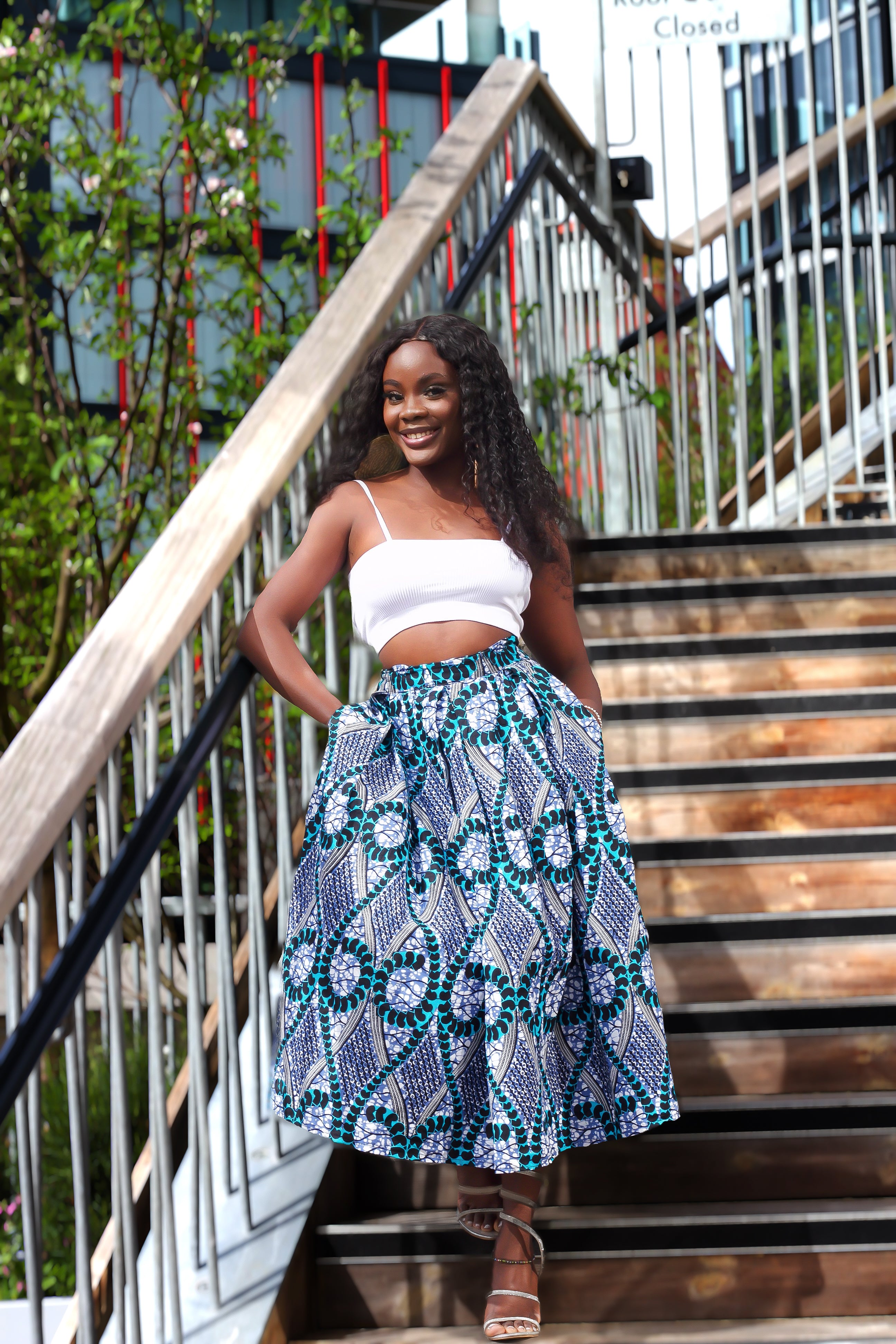 New in African Print Box Pleat Midi Skirt - Tammy